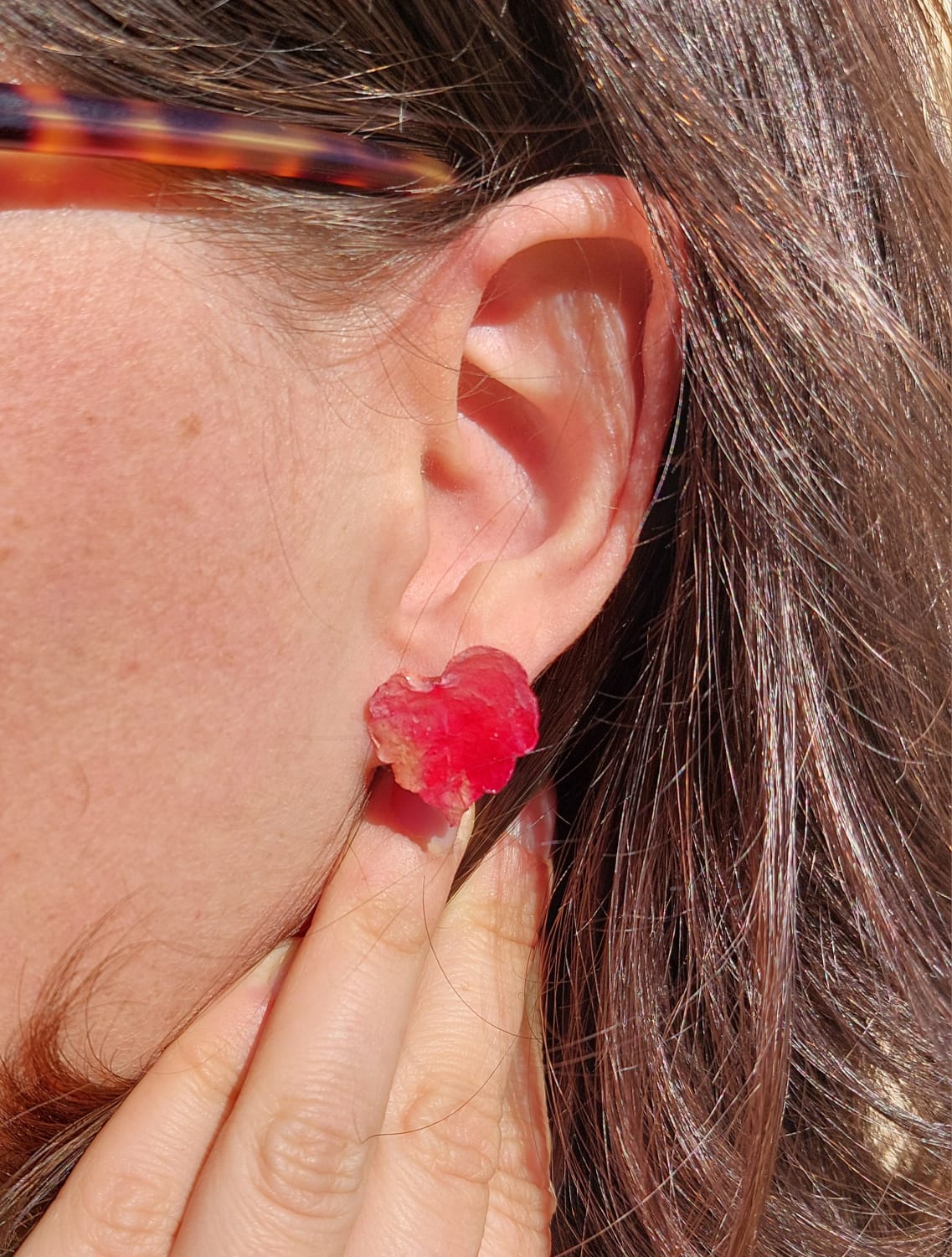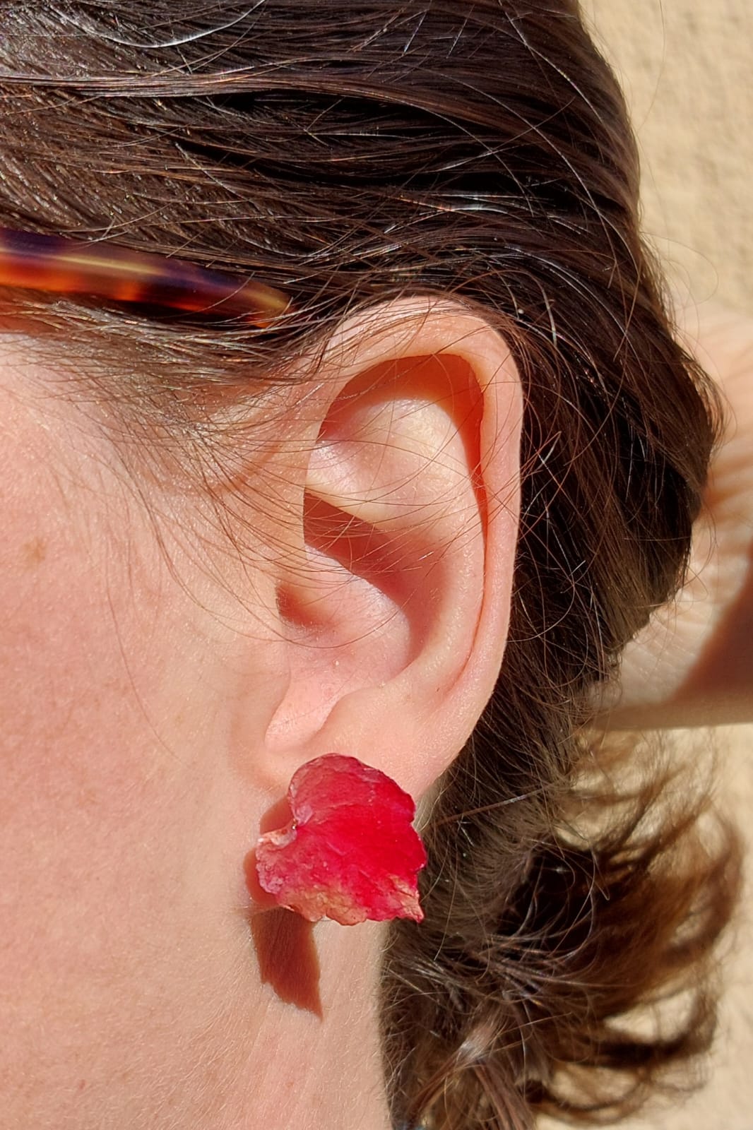 Matières : attaches en acier inoxydable et hypoallèrgénique, résine, feuilles naturelles