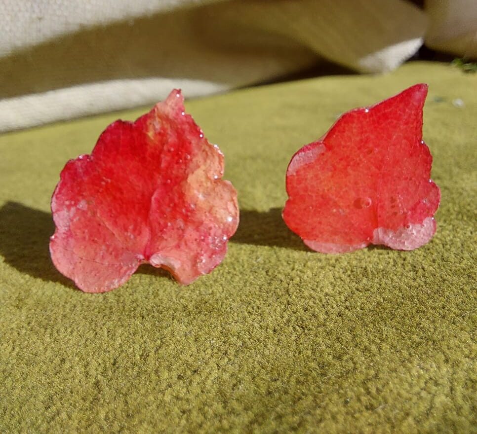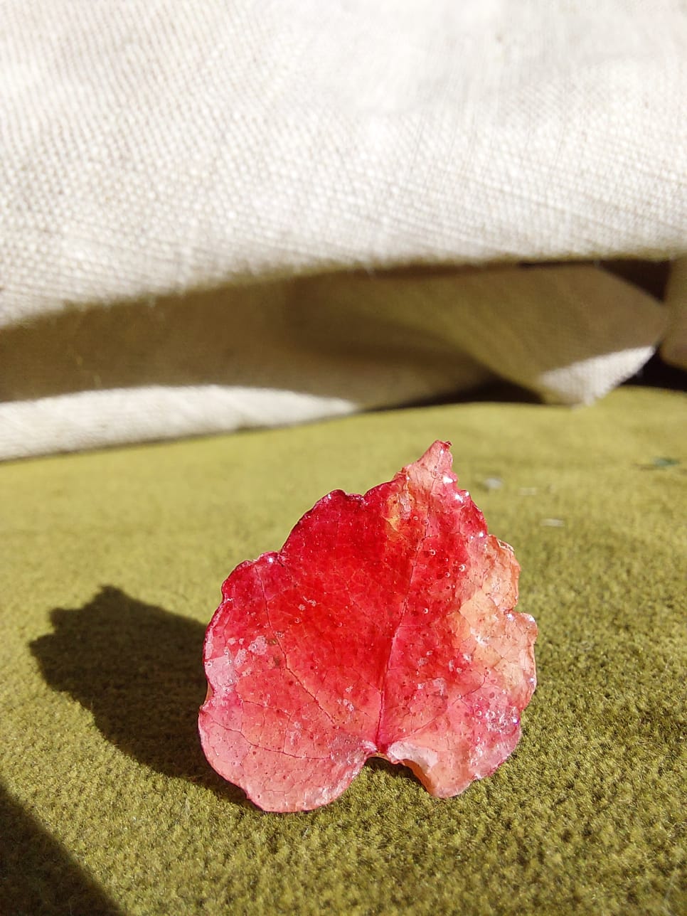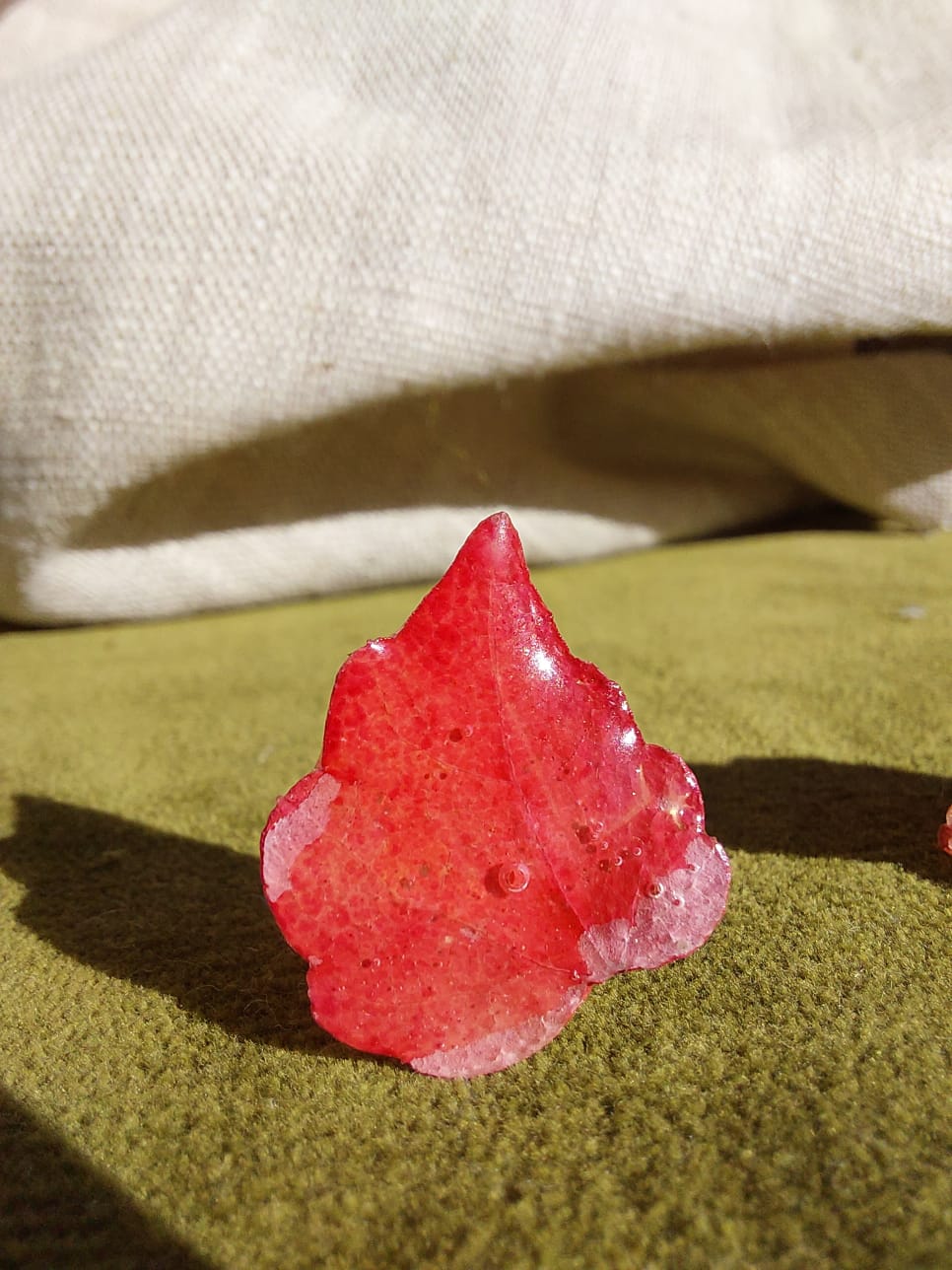 J'ai été frappée par la vivacité du camaieu de couleur de ces feuilles à l'automne allaont du rouge au vert pomme en passant par l'orange. Après les avoir sélectionné une à une sur les murets de pierre proche de chez moi, j'ai proposé les premiers modèles lors de marché de Noël. Ayant beaucoup plût, je ne dispose plus de stock à ce jour. je te propose donc aujourd'hui les tous derniers modèles jusqu'à l'automne prochain.
